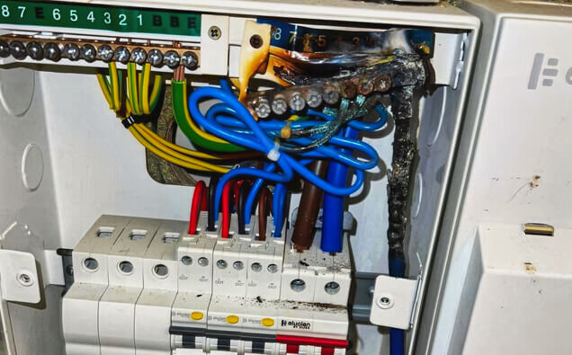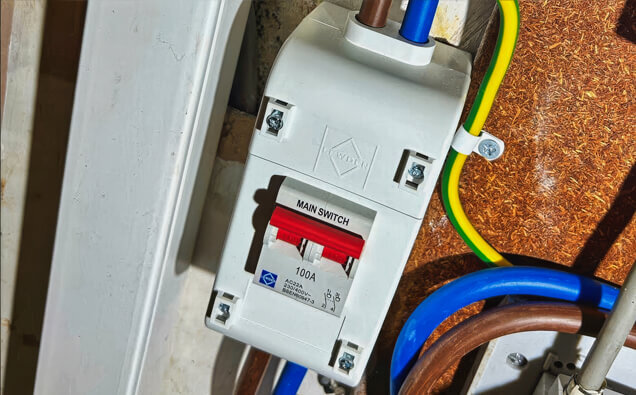 Signs that your consumer mains may need upgrading include frequent circuit breaker tripping when multiple appliances are used, dimming lights, inadequate power for new installations such as air conditioning or EV chargers, visible deterioration of external cables, or if you have old fabric-covered or rubber-insulated cables. Properties built before 1980 often have undersized consumer mains that don’t meet current electrical demands.
